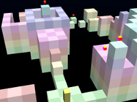 A 3D platformer with level editor. Instead of saving levels on the server, the editor encodes the level data into a bookmarkable URI which is decoded entirely on the client side.